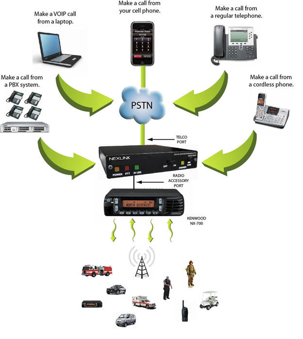 cross connection from cellular, PBX or PSTN networks to Kenwood NEXEDGE and